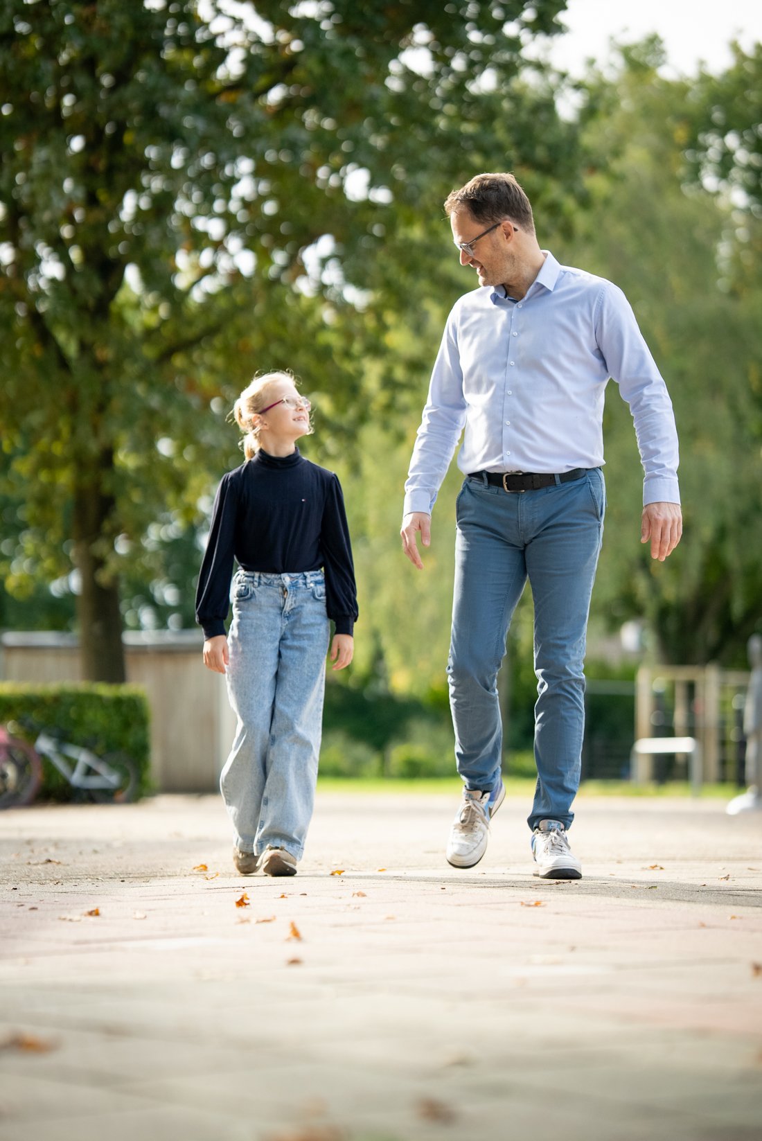 Toen dochter Kyra naar de basisschool ging, zochten Bram en zijn vrouw een plek waar hun kind zich op haar gemak zou voelen én breed kon ontwikkelen. Ook belangrijk: “Dat ze zich hier niet blindstaren op cijfers, maar kijken naar de groei van het kind. En dat zit héél goed, hier op De Klimop.”
